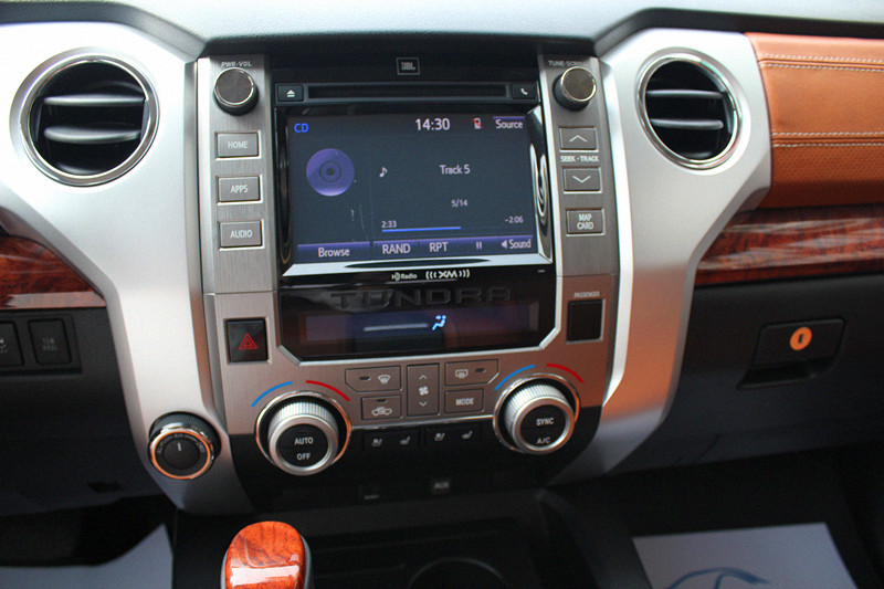 【品牌名称】14款丰田坦途1794 【登记日期】2014年1月 【行驶里程】11500 【排放标准】欧4(国4) 【车辆配置】14款丰田坦途1794,5.7L V8全铝发动机,381马力,6速手自一体变速器,1794限量版内饰配置豪华,JBL音响系统,盲区提示,超车辅助,座椅通风,座椅加热,导航,倒影,天窗,桃木内饰,双材质拼接真皮座椅,电动后视镜,大灯高度调节。